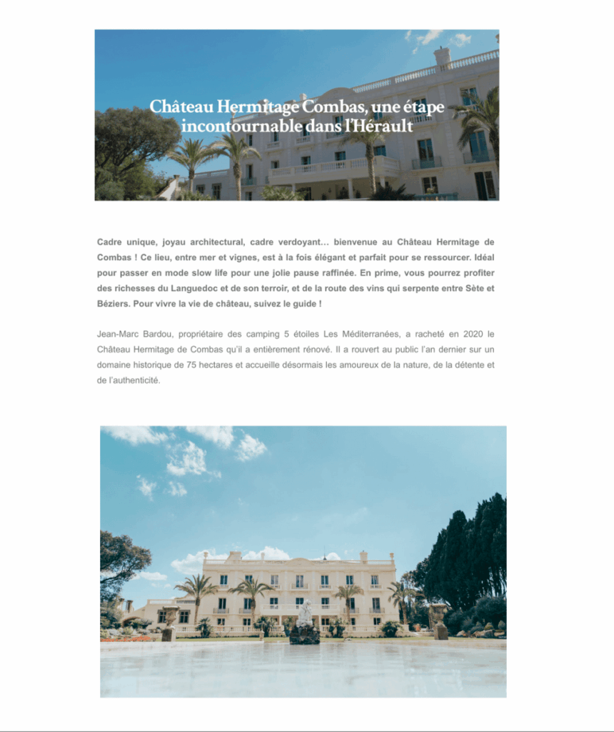 WorldConnectedBusiness parle du domaine Hermitage de Combas